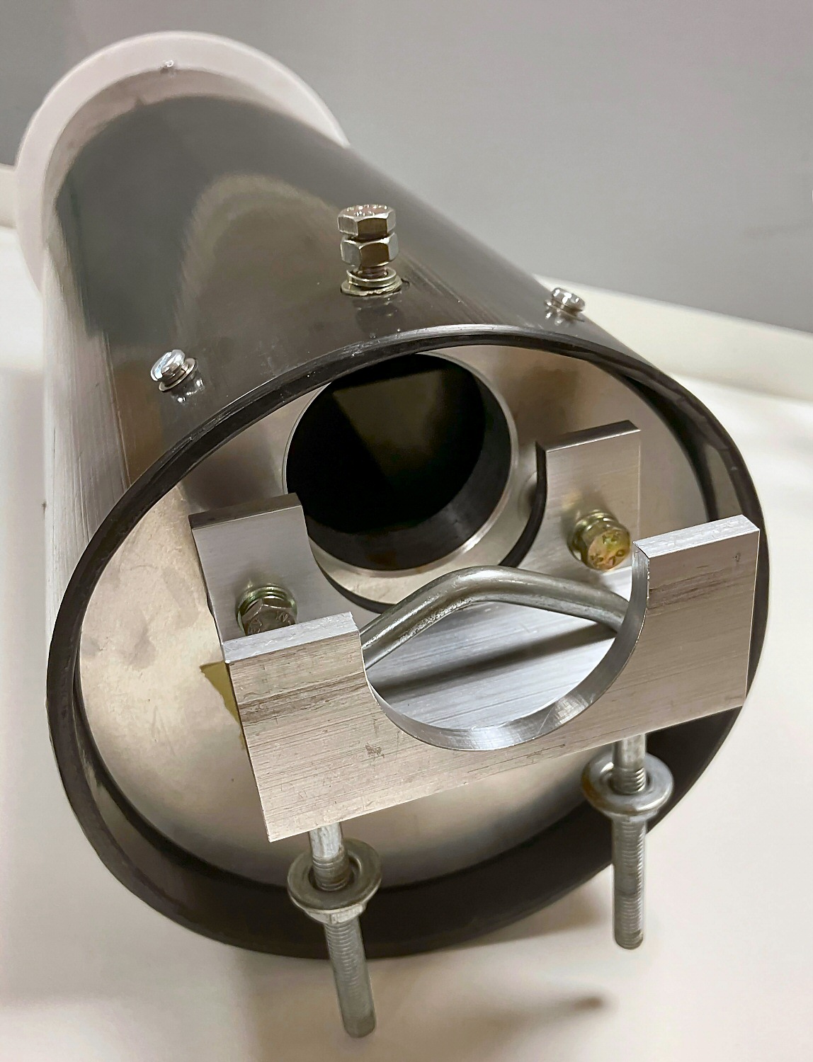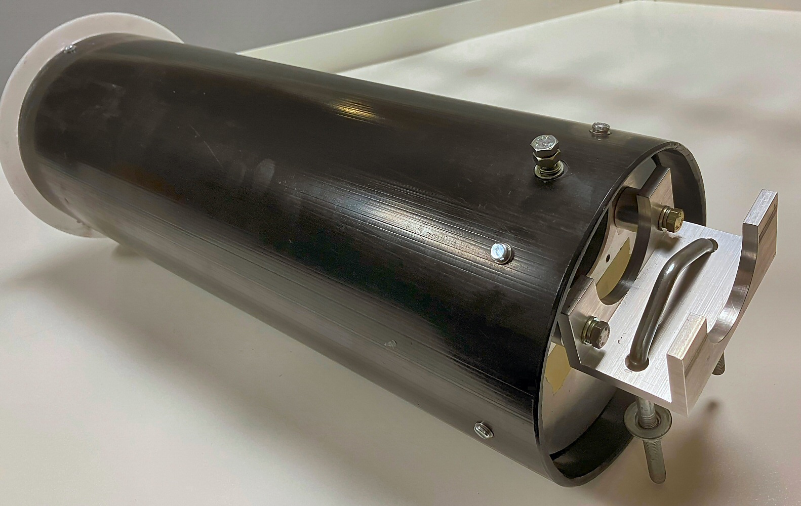 GB3CMS, our microwave beacon, uses a brass 10GHz waveguide double-sided WG16 slotted array for its antenna. Designed and built some years ago, the slots act as a phased array. They radiate the energy in a largely horizontal direction whilst the side-wings convert its azimuth coverage to a more omnidirectional characteristic. Early installations had problems weatherproofing the open slots. Past attempts had tried kapton or thick polythene close to the slots, which either suffered from sunlight & weather, or mismatched it too severely. The current deign is a far more robust one with a custom machined bracket that clamps a dielectric tube and cap to a scaffold pole that also holds the masthead unit.
